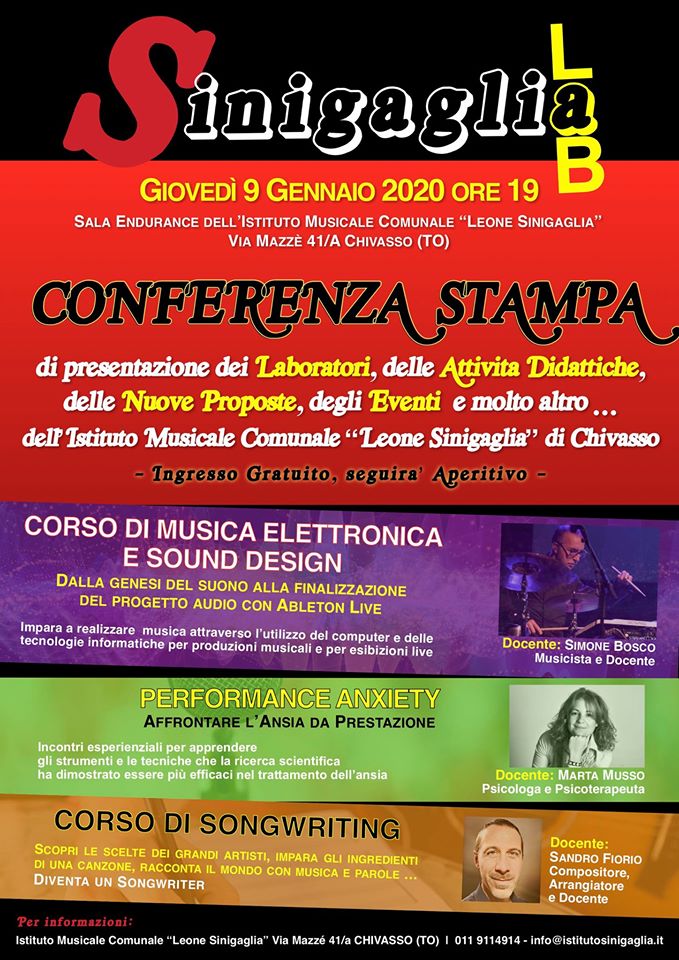 Presentazione di laboratori, attività didattiche, nuove proposte, eventi e molto altro da parte dei docenti e della direzione dell’Istituto Musicale Leone Sinigaglia di Chivasso