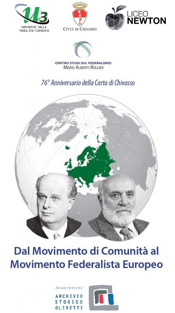 Dal Movimento di Comunità al Movimento Federalista Europeo: le letture di Adriano Olivetti e di Altiero Spinelli (lunedì 16 dicembre alle 17:30 al Teatrino Civico) e Consiglio comunale aperto (giovedì 19 dicembre alle 18:00 nella Sala del Consiglio Comunale) nella settimana di eventi dedicati all’anniversario della Carta di Chivasso