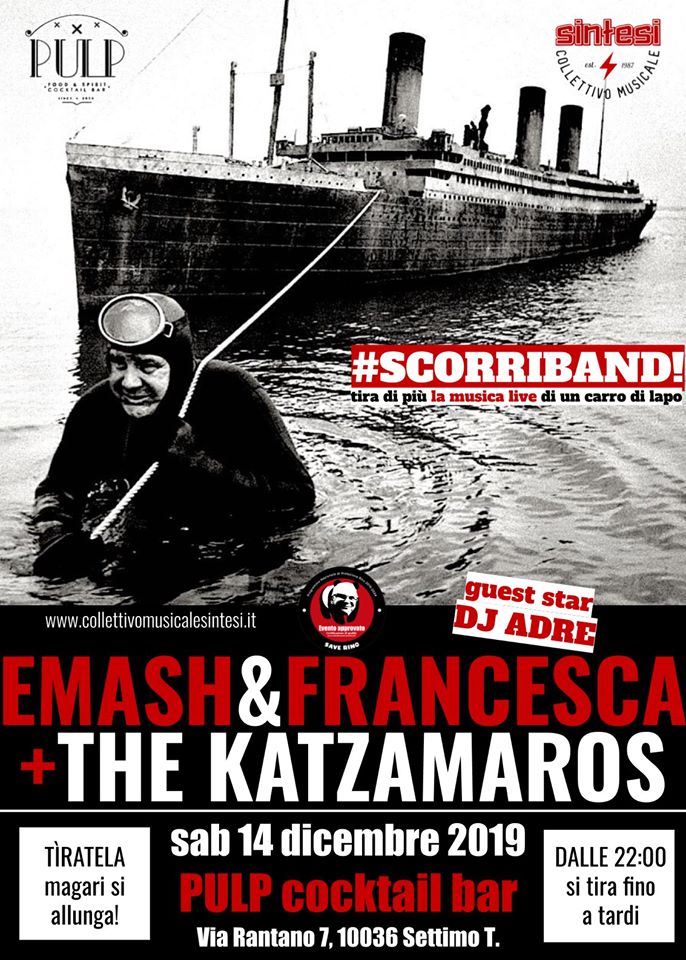 Serata organizzata dal Collettivo Musicale Sintesi al Pulp CocktailBar di Settimo Torinese: concerto con Emash & Francesca Magaldi + The Katzamaros