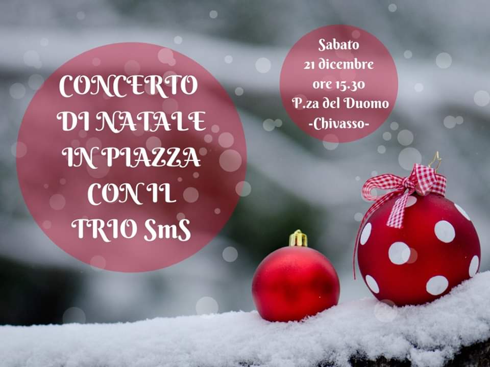 Canti di Natale in centro a Chivasso con il Trio SmS: Marilena De Mauro (voce), Sandro Marrocu (piano) e Simone Santià (sax)