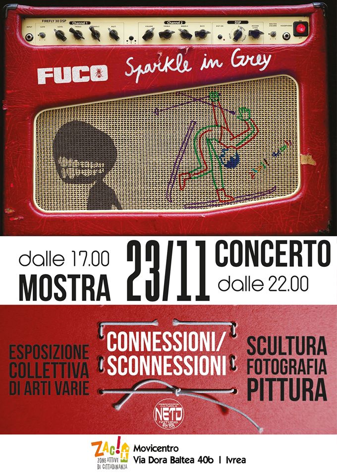 Evento organizzato da ZAC (Zone Attive di Cittadinanza) di Ivrea in collaborazione con l’associazione chivassese Nothing Else To Do. Mostra di arte varia sul tema Connessioni Sconnesioni e concerto con Fuco e Sparkle In Grey