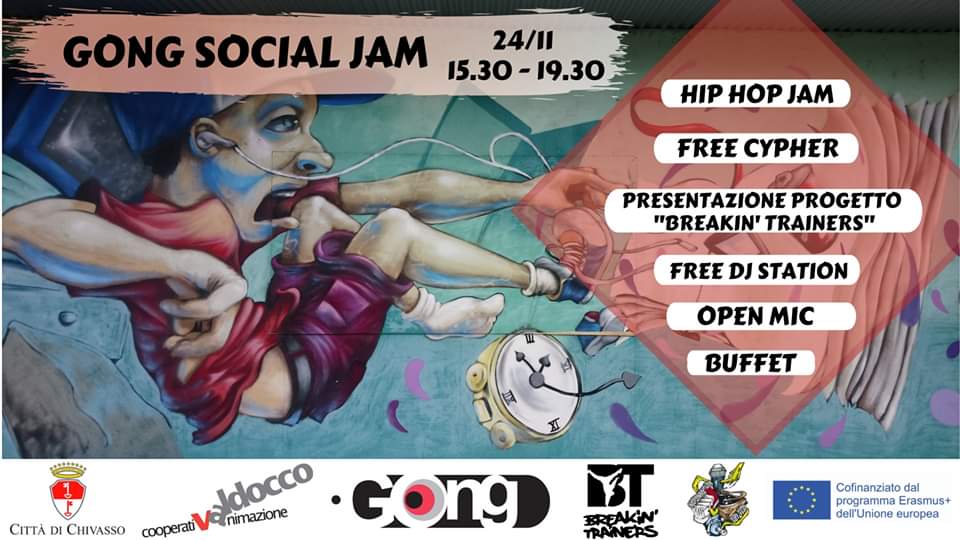 Jam libera di presentazione progetto “Breakin’ Trainers” dell’Associazione Espressione Hip Hop al centor giovanile Gong di Chivasso. Breakin, djing e open mic. Entrata a offerta libera
