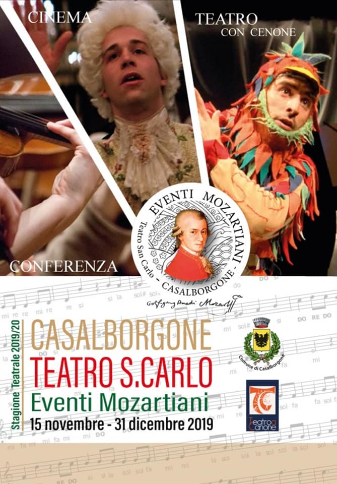 Eventi Mozartiani presso il Teatro San Carlo di Casalborgone. Si inizia venerdì 15 novembre conversando su Mozart e sabato 16 novembre con la proiezione del film “Amadeus”