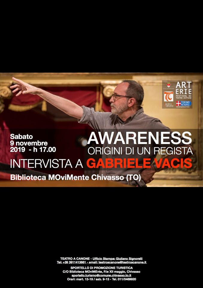 Nuovo appuntamento della rassegna Arterie, Festival di Teatro diffuso a Chivasso. Intervista a Gabriele Vacis, a cura del giornalista Roberto Pavanello, presso la Biblioteca Movimente