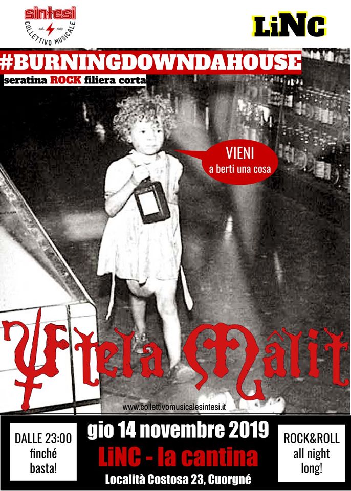 Serata di rock incendiario al LINC, la Cantina di Cuorgné, con il rock trascinante degli Utela Malit! Vieni a berti una cosa. Organizzato da Collettivo Musicale Sintesi