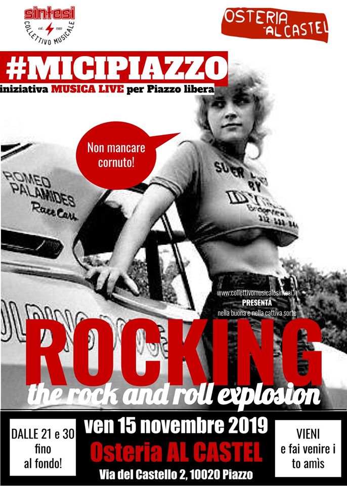 Serata rock’n’roll con i Rocking – The Rock’n’Roll Explosion all’Osteria AL Castel di Piazzo, Lauriano. Organizzato dal Collettivo Musicale Sintesi