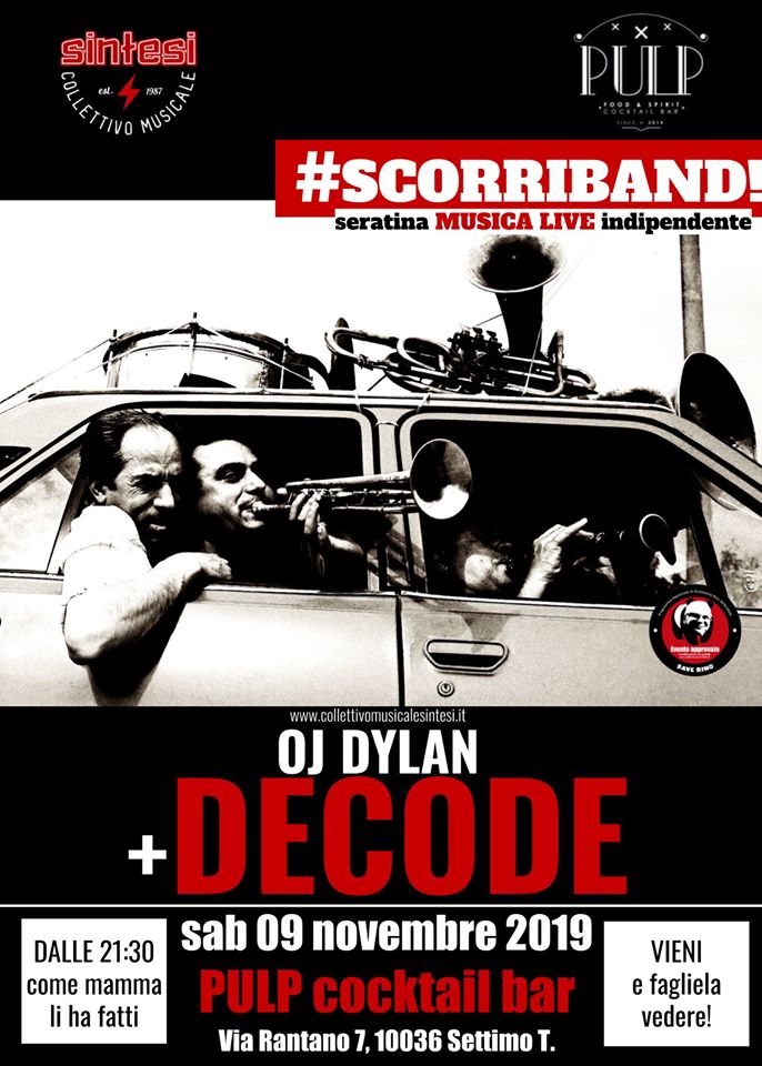 Pulp Cocktail Bar e il Collettivo Musicale Sintesi organizzano il live di Decode e OJ Dylan