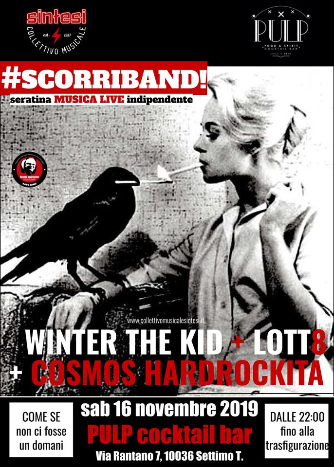 Al Pulp di Settimo Torinese torna Scorriband, evento creato dal Collettivo Musicale Sintesi. Concerto con Cosmos Hardrockita, Winterthekid e Lott8